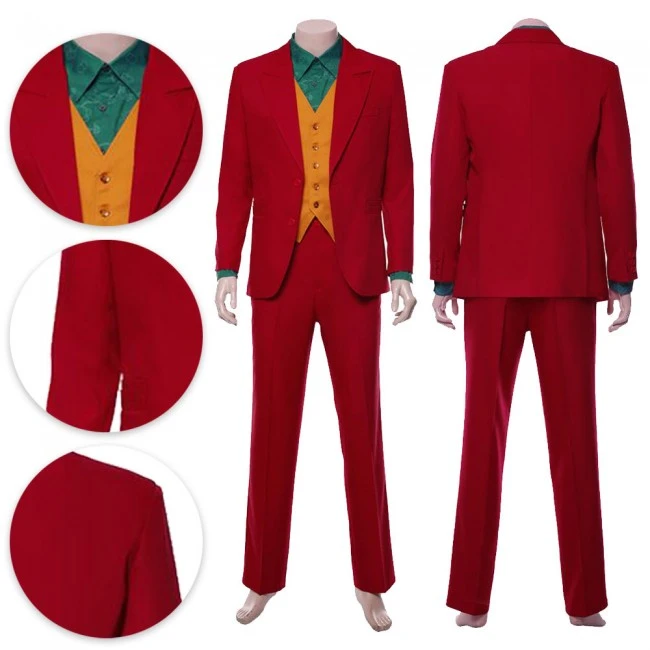 The designing and color combination of the costume flawlessly imitates the one we have seen the Joker donning in at the last scenes of the film. The green-colored shirt is paired with a bright yellow-colored vest. The jacket and the trouser are dyed in bright red color to resemble the actual Joker costume seen in the movie. You need to complete the appearance by painting your face accurately, as is spotted on the big screen. It is suggested that you do not wear any mask or headpiece because this new red Joker Cosplay outfit in 2019 will go best with scary makeup on the face. No headpiece.