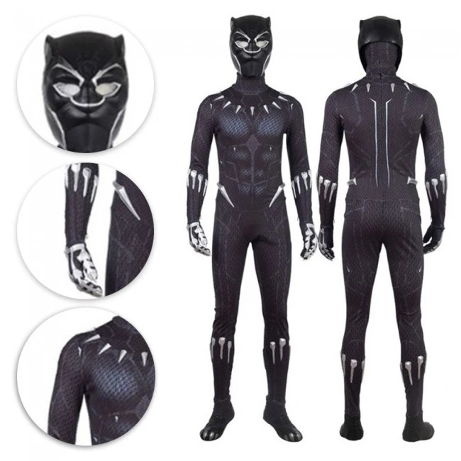 - The Black Panther replica costumes are available in child and adult sizes, fun group or family costume.