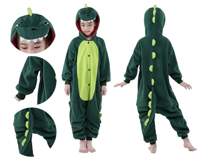 A special blend of comfort as well as fun, dinosaur pajamas costumes are soft to the touch. These costumes will keep your little one warm during those cold winter months. It is a good costume for Halloween party as well. Dinosaur pajamas Costume for kids are designed to allow your children to quickly get dressed while the loose fit gives them flexibility to easily wear over their existing clothes making it an ideal choice for Halloween party. This costume is a cool animal costume designed for both boys and girls. It is easy to clean by hand and machine.