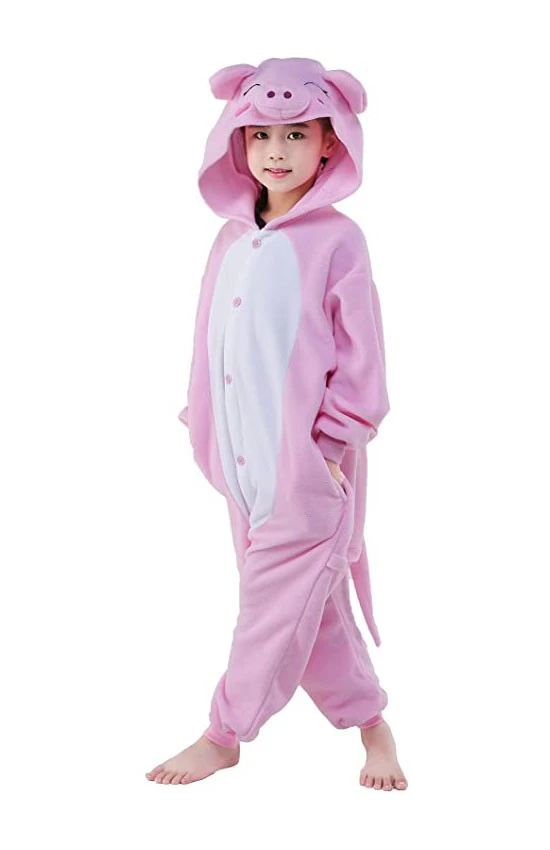 House cats, tigers, leopards and now pig onesie Halloween costumes for adults and kids. If you are looking for pig pajamas, Halloween Costume for Kids is the place to be. Our complete line of jumpsuits includes toddler onesies, girls’ piggy style and more. This cute fluffy costume comes with an attached hood and button up front. It works great as a unisex onesie or pajamas. You can wear this cute suit in any party or cosplay event.