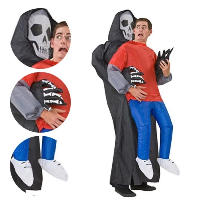 - The whole costume is modeled after the grim reaper holding a man. The reaper costume is sturdy enough for you to get in and out and it has the face mask to make it look much more realistic.